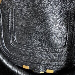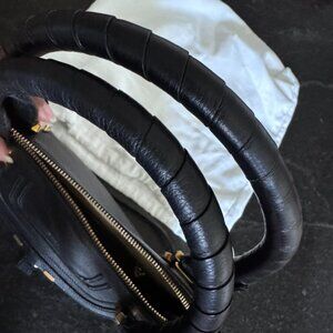 Barley used, no marks or scratches. A more compact version of the iconic Marcie purse, this small bag is crafted from grained calfskin. Clean lines and a contoured design enhance the slouchy silhouette, while hand-wrapped leather handles add crafty detail. The X-shaped buckles lend a refined finish. Double handles and a long, removable shoulder strap make this small double carry bag a truly versatile accessory.