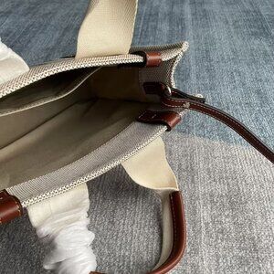 A perennial favorite, Chloé's Woody bag is updated in luxurious canvas with smooth leather panels. This Italian-made piece is finished with a signature logo on the handles.