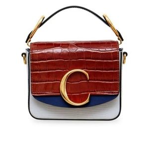 Crocodile and python embossed leather bag. Comes with a detachable strap.