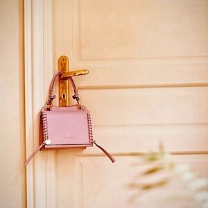In excellent condition and the CUTEST mini satchel bag ever. The bag is a light lavender purple color. Due to lighting some photos look more “pink” but it is a light purple.