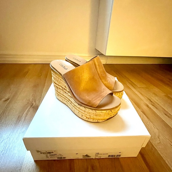 Runway Chloe SS14 Rubiana pastel pink leather and cork platform mules with metal detail on the back, re-issued this year too. Worn once for couple of hours only. With box.