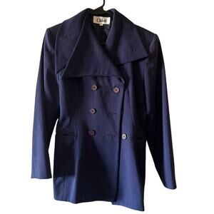 Chloe Navy Wool Peacoat – Double-Breasted Classic Tailored Jacket, Size M