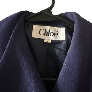 This Chloe navy wool peacoat features a classic double-breasted silhouette, clean tailoring, and subtle tonal buttons. Designed with timeless minimalism, this coat pairs effortlessly with jeans or tailored trousers for refined fall/winter dressing.Dark blue color with three buttons to close the jacket.