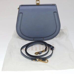 Chloe Nile Hand Bag Leather 2way Light Blue Gold Auth 111358V