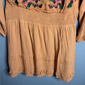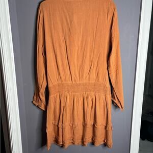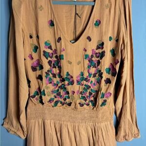 Chloe Oliver Brown Long Sleeve Embroidered Drop Waist Dress V Neck Size Small
