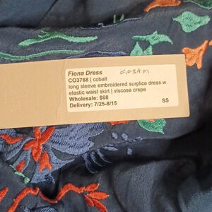 Chloe Oliver Cobalt Long Sleeve Embroidered Surplice Dress w/ Elastic Waist SSS