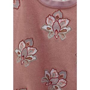 Pre-owned Chloe Oliver short sleeve jersey knit, sweatshirt. Color is a orange rust with gold flex throughout. Lotus flower pattern on front. Flared sleeves. Medium weight.