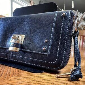 Elevate your everyday accessories with this Chloe Paddington Leather Black Gold Full Zip Long Wallet W/ Working Padlock Key featuring the iconic padlock design with a fully functional key.