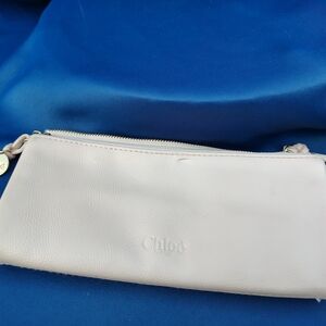 Sophisticated cream leather clutch by Chloe. Sleek design with a touch of elegance.