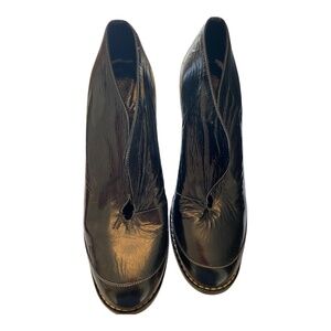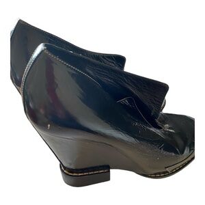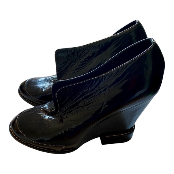 Rare iconic, patent leather wedge ankle boots are gorgeous with the Italian leather V cutout in front. These premium beauties have a round toe with ankle cut. Step out in these Rare Chloe heels