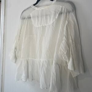 Chloe Ready to Wear White Plisse Ruffled Top Sz 42 XL 100% Cotton Blouse Gauzy