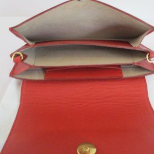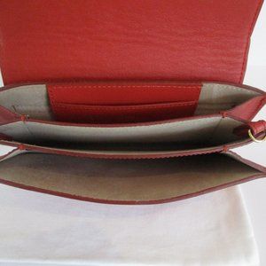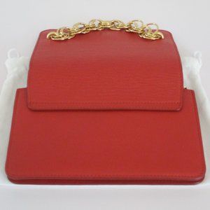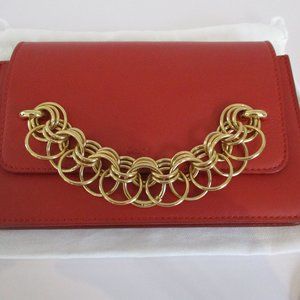 Elegant red crossbody bag by Chloe. Features a striking gold chain detail. Perfect for any occasion.