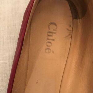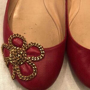 Chloe Red the leather ballet flats with gold chain flowerSize 37 1/2.