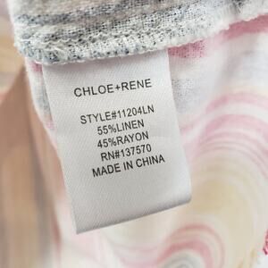 Chloe + Rene striped linen blend ruffle short sleeve tie front shirt woman's size M