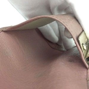 Features a pink leather exterior with a metal gold "bow."