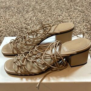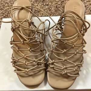 Chloe Ricky block heeled Strappy Sandals 7.5 Chloe‘s color is medium pink. I would consider these Taupe. Great strappy sandals that are comfortable but sexy due to the block heel. The heel is 2.5". These were originally $650. Wear is shown on soles purchased from Neiman Marcus. Come with two dust bags and original box.
