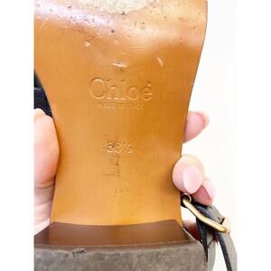 Chloe Rony Embellished Black Leather Gold Buckle Sandal 38.5