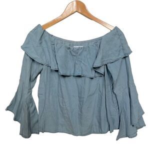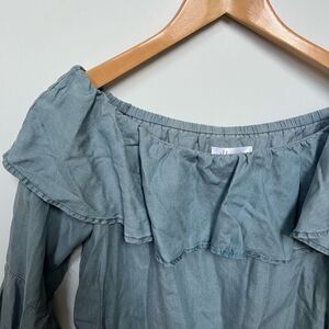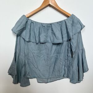 Chloe Rose Bell Sleeve Off the Shoulder Chambray Top Ruffle Tencel size S