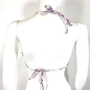 Chloe Rose Triangle Bikini Top Seashell Shell Print Ruffle Edge Halter Tie Womens NWT $75