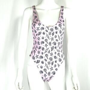 Chloe Rose One Piece Swimsuit Open Back High Cut Pink Seashell Shell Print NWT