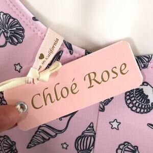 Chloe Rose One Piece Swimsuit Open Back High Cut Pink Seashell Shell Print NWT $150