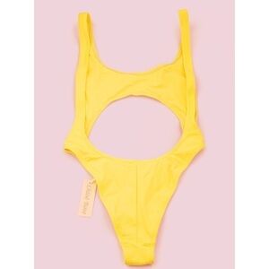 Chloe Rose Yellow Cutout Swimsuit Swim Women’s One Piece Bathing Suit Large NEW