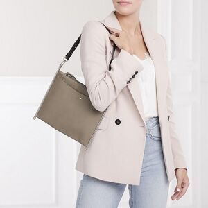 11”W x 9”H x 1”D. (Interior capacity: medium.) 10” strap drop; 19” - 22” convertible strap drop. 1.10 lbs. With its two optional straps and slim, streamlined design, this smooth leather bag is a versatile companion for everyday wear and for travel. Mixed-finish hardware adds a trend-forward look to the style. Optional, adjustable shoulder strap; optional, adjustable crossbody strap