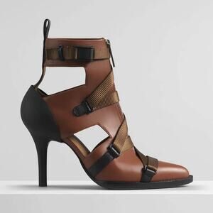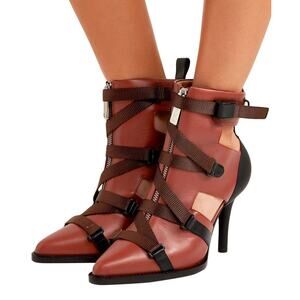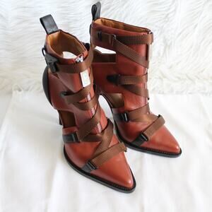 Chloe Runway Tracy Brown Black Front-Zip Strappy Ankle Boots Futuristic