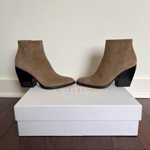 Chloe Rylee booties in suede calfskin. Work once.