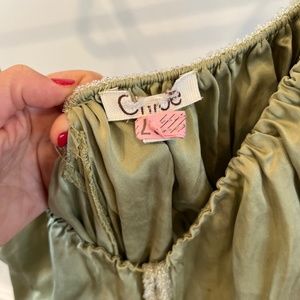 100% Italian Silk Cocktail Dress From The Chloé Spring 2005 Ready-to-Wear Runway Collection. Phoebe Philo For Chloé. Sage green, gold silk organza bottom. Deep décolleté and straps with silver tube beads. Hidden side zipper.
