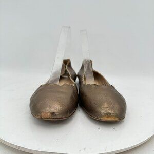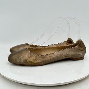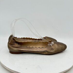 Chloe Scalloped Women Size EU 38 US 8 Gold Leather Slip On Ballet Flat Shoes
