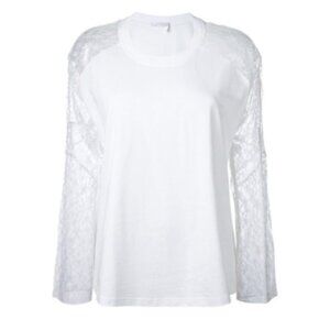 Chloe Small Lace Sleeve Blouse 100% Cotton Optic White NWT MSRP $1,051