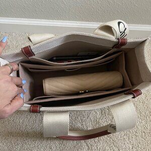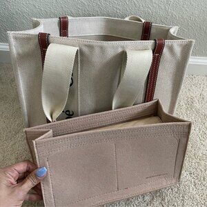 Chloe Small Woody Logo Strap Linen Tote
