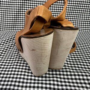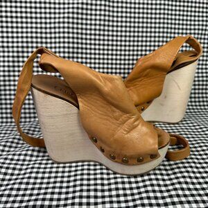 Chloe Studded Brown Leather Ankle Strap Wood Platform Clog Style Heel EU 38