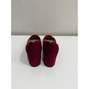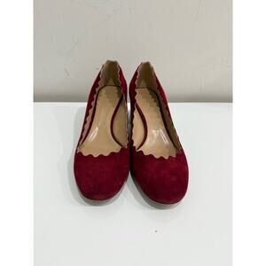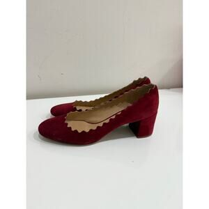 Chloe Suede Lauren Scallop Trim 50mm Block Heel Pumps Red Women's Size EU 40.5
