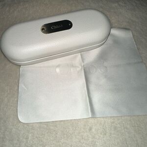 Elegant Chloe sunglasses case. Features a sleek white design. Gold accent adds a touch of luxury. Perfect for stylish protection.