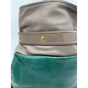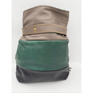 Gorgeous large tricolor Chloe leather Hobo Bag in great preowned condition—ink near inside label and scuff on exterior. Wear it as a hobo or it doubles as a Crossbody if you desire. Antiqued gold-tone hardware, single flat shoulder strap, single zip pocket at front face, chocolate canvas lining, single slit pocket at interior wall and clasp closure at front. Buttery soft leather in gray, black and green.