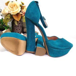 Chloe Turquoise Suede Platform Heels - Shoemint