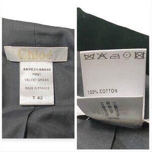 Chloe Velvet Cropped Blazer Green Cotton FR42 Made in France