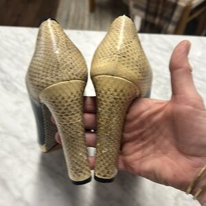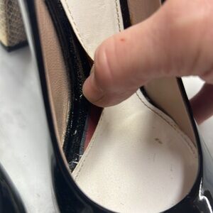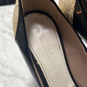 Chloe' Vernice Black Patent Leather and Snake Print Accent Chunky Heel Size 38