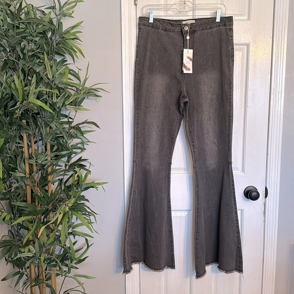 Chloe & Violet charcoal light washed flare jeans NWT 30