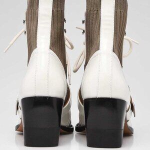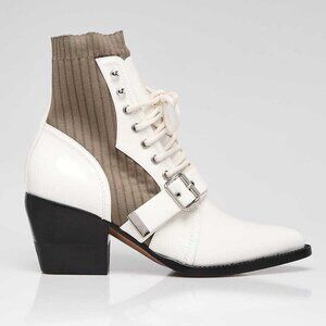 Chloe White Leather Green Knit Lace Up Rylee Ankle Boots Size 9.5/40