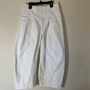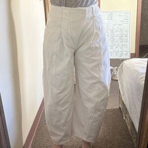 Good Used Condition - White - Textured - Herringbone Weave - Fraying detailing - Some Staining - High waisted - Oversized - Tapered leg - Hook-and-eye and zipper closure - 100% Cotton - Made in Italy - First Photo from Yoox