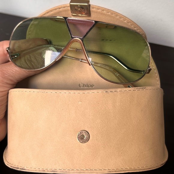 Preowned in very good condition comes with Chloe case please see all pictures. They are adjusted to my face thats why in one picture you can see the arms of glasses are a bit uneven. I wore but in great condition with small scratches no that visible when looking at glasses. Please ask questions before buying because they are preowned