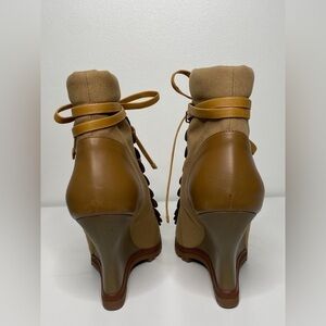 With a contemporary design and an opentoe twist, these wedge boots feature a sporty, sneakerinspired look, a curvy wedge, and a padded collar for extra comfort.
