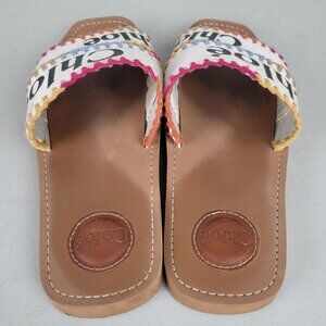 Chloe Woody Sandals Slides Flats Logo Multicolor Stitch Size 38 US size 8