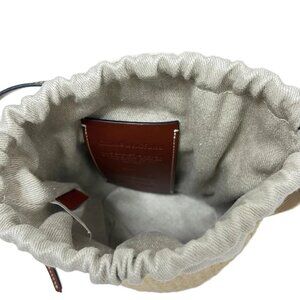 Chloe Woody Small Basket Beige Dark Brown Natural Fiber Shoulder Bag 556-081725