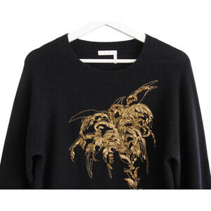 Chloe Wool Cashmere Sweater Gold Palm Tree Metallic Embroidery Small 2016