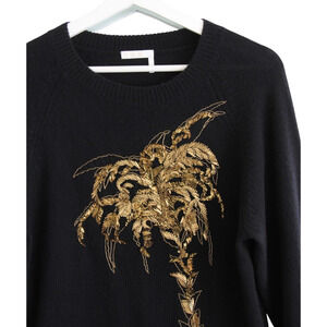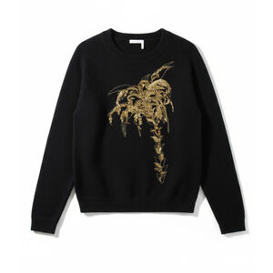 Chloe Wool Cashmere Sweater Gold Palm Tree Metallic Embroidery