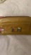 Elevate your style with the Yellow Leather Wallet. This chic accessory features a sleek design and a vibrant yellow hue, perfect for adding a pop of color to your ensemble. Lightly worn. One pink stain within the billfold